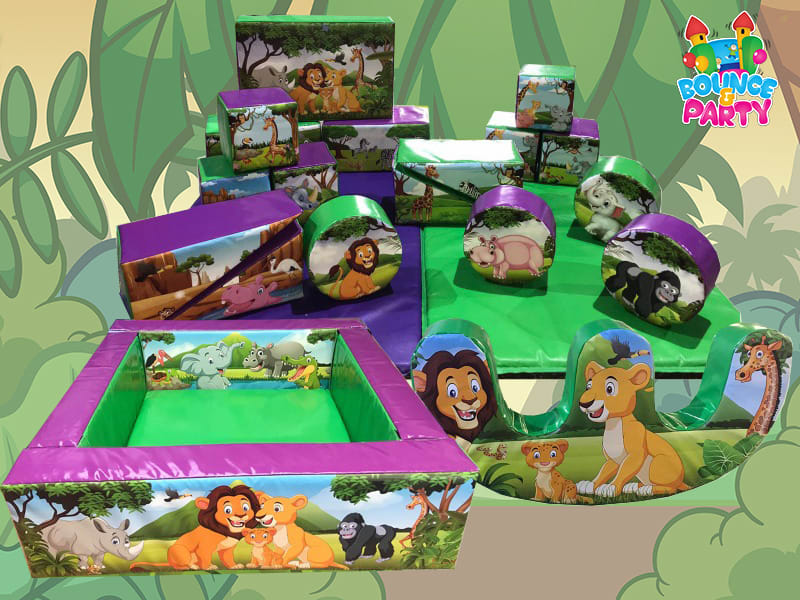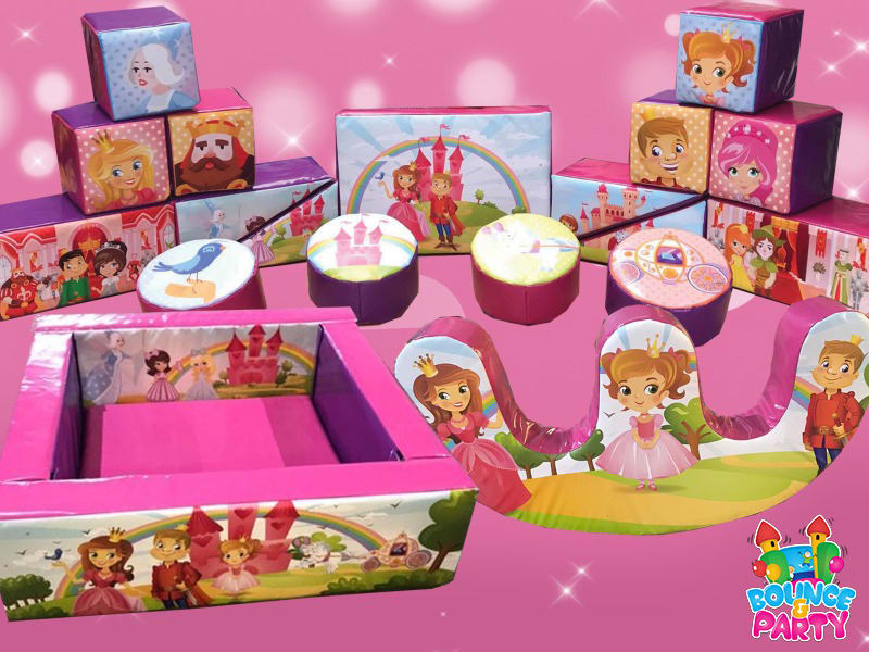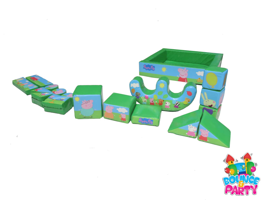 Choose between Jungle theme, Princess theme, Garden Fairy theme or officially licensed Peppa Pig. All sets include: 17 themed soft play shapes, a themed double rocker, themed matching ball pool, with 500 matching balls and themed mats to compliment the setup.
