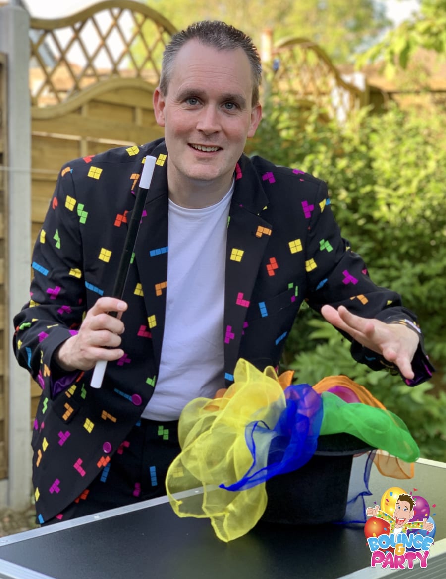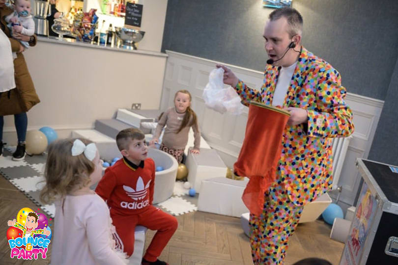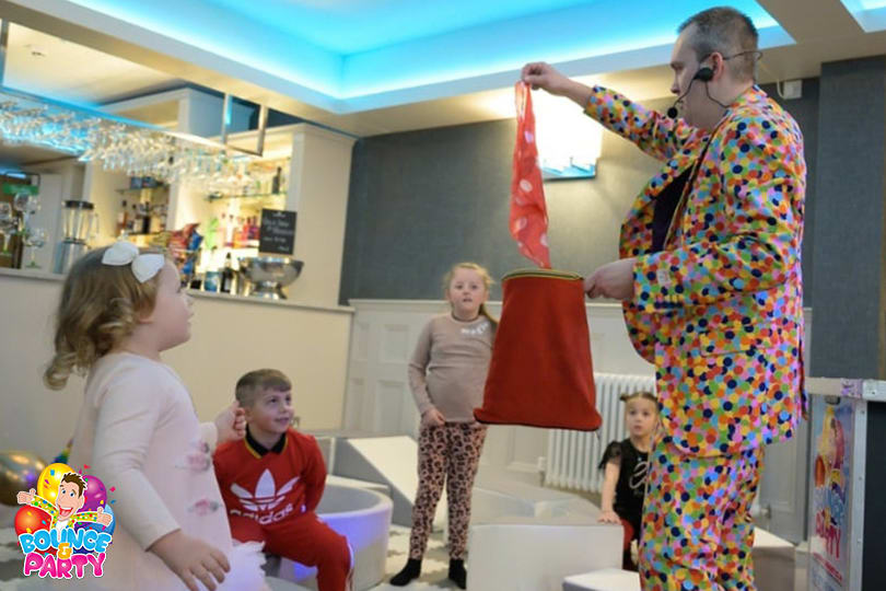 Bounce & Party can ensure that your child's birthday is a magical one and a day to remember. Designed for children aged 4 to 8 years old, our comedy magic show is included as part of our Magic & Mayhem party package. With a mix of child friendly, colourful, silly magic tricks, comedy, interaction and fun. Magic tricks include large props, giant sized cards and colourful accessories throughout the show. The final magic trick doesn't go quite to plan and will require your child to assist at the end of the show and become the magician. They will perform the final trick to produce their own colourful birthday card that they get to keep.