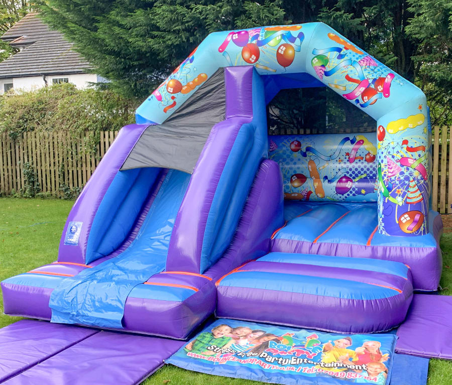 Looking to add some extra excitement to your party entertainment package? Look no further by adding our Party Themed Bouncy Castle with Slide to one of our party entertainment packages. Whether you're planning a private birthday celebration, a wedding, a community fun day, or a corporate event, our Bouncy Castles are the perfect addition to make your event unforgettable. All of our Bouncy castles are available as part of a Party Entertainment Package.