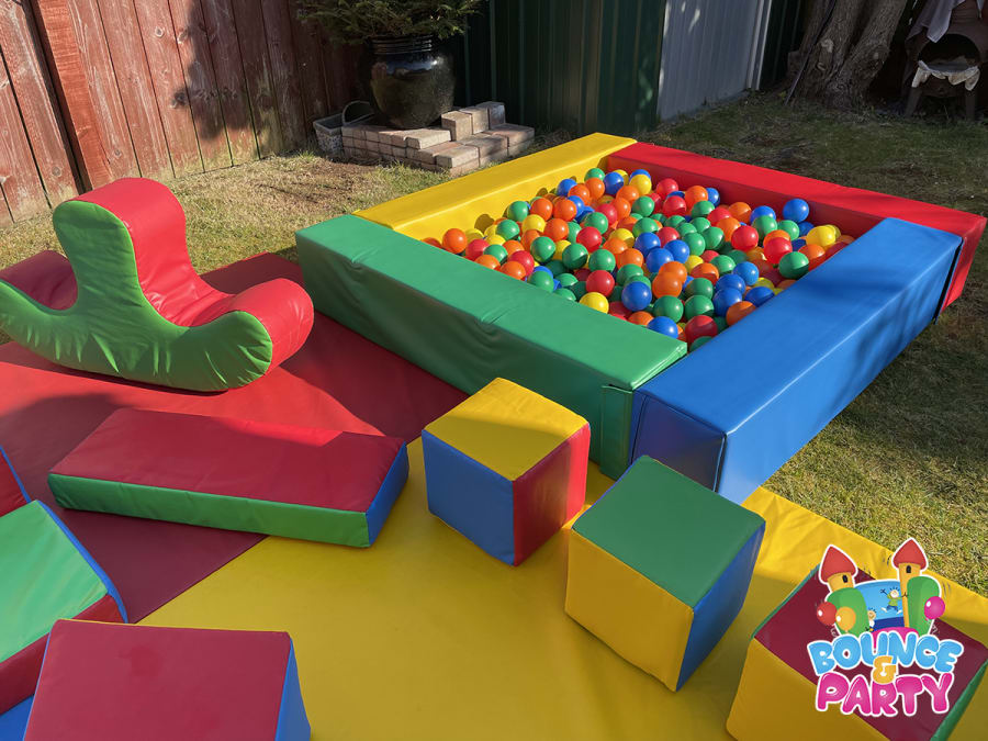 Mobile Multi Coloured Soft Play & Ball Pool Setup With Mats & Shapes