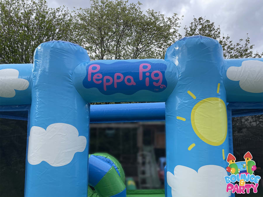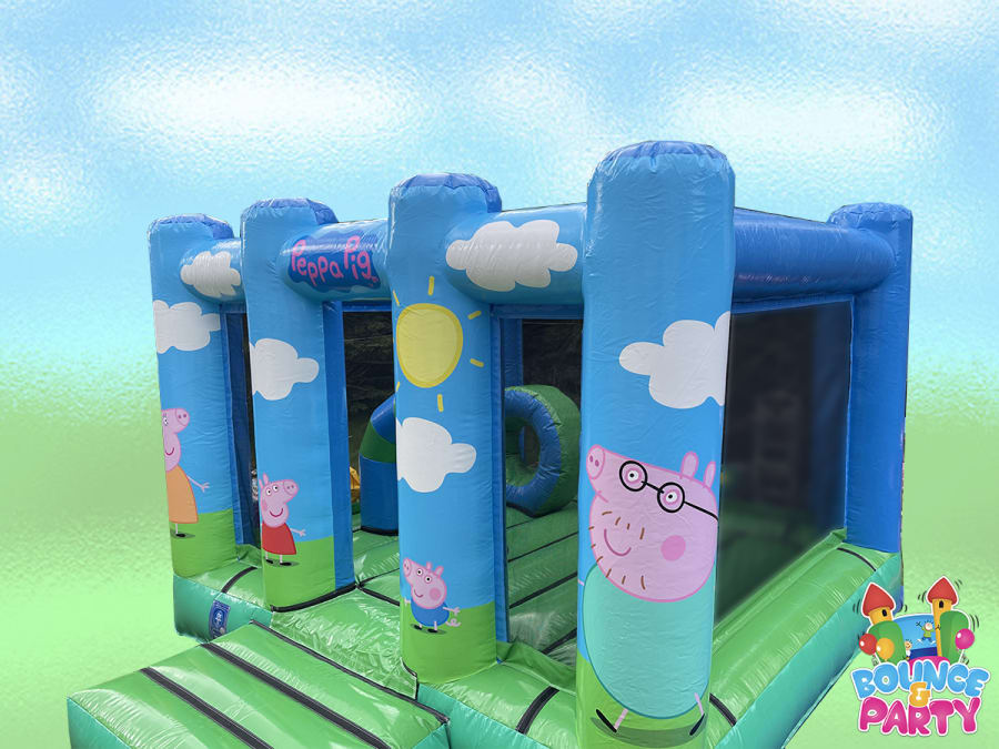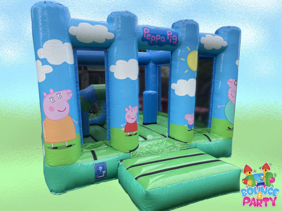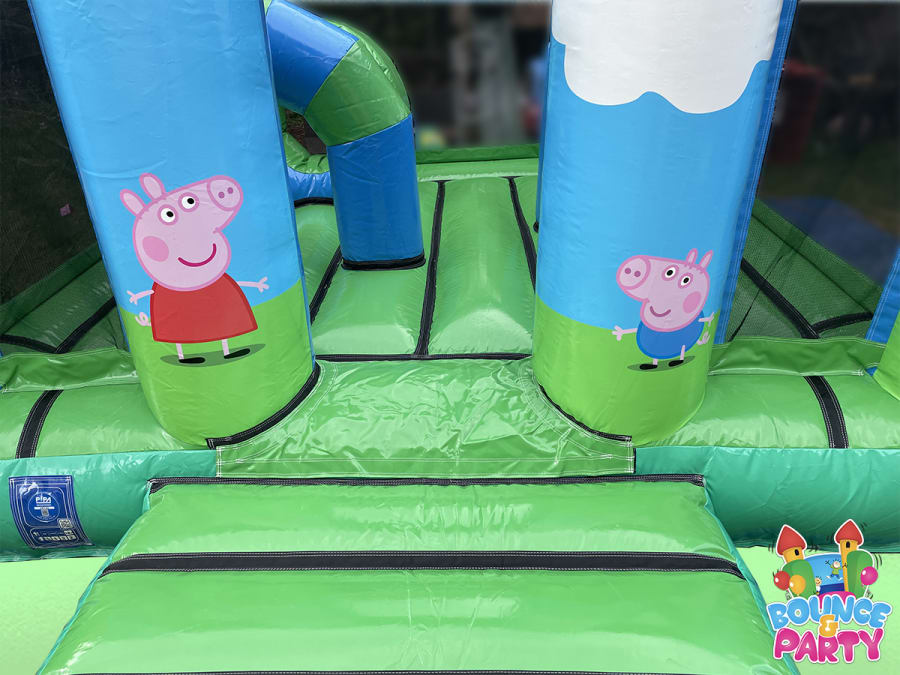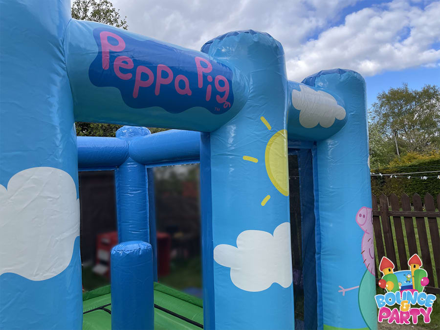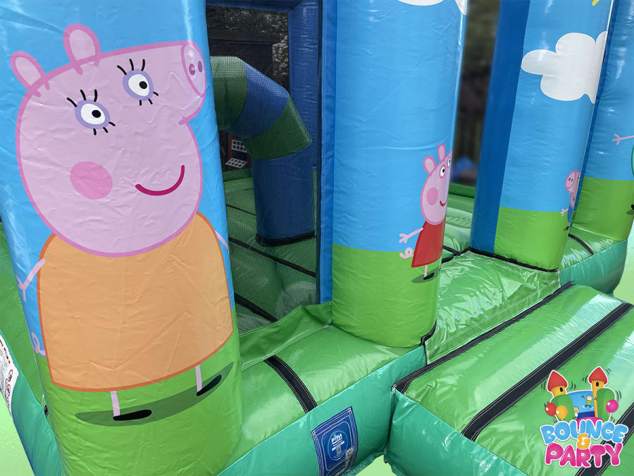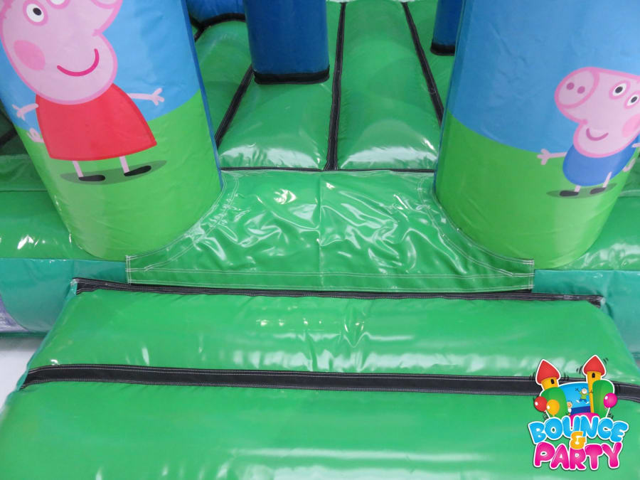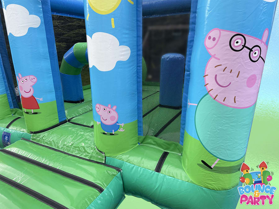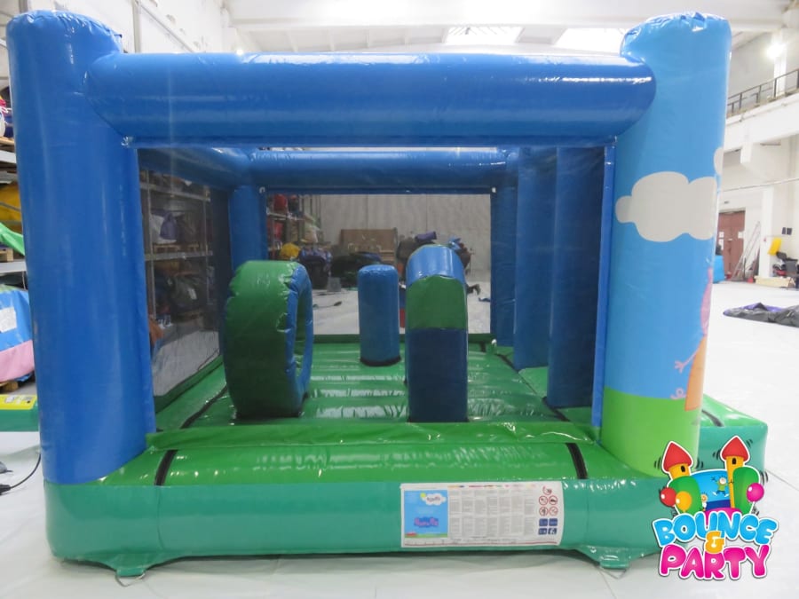 This activity bouncy castle stands at just 9ft high, the Peppa Pig activity bouncy castle can be used indoors within a venue or outdoors in your garden. This activity bouncy castle features a large 10ft by 14ft play area and features a mix of obstacles.
