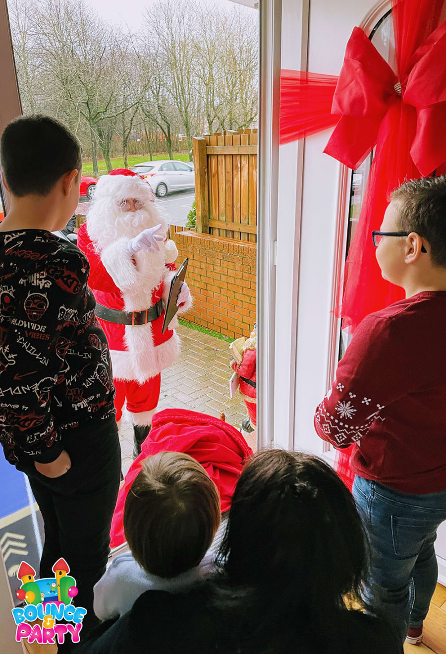 Bounce & Party are pleased to be able offer Santa Claus (Father Christmas) visits to your residential property this Christmas eve 2022. (See areas we cover below). Our professional Santa Claus will come to your house for a 30/45 minute visit to wish you and your child or children a very Merry Christmas.