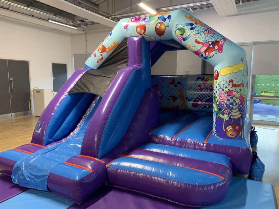 • 12ft x 15ft Party Themed Bouncy Castle with Slide