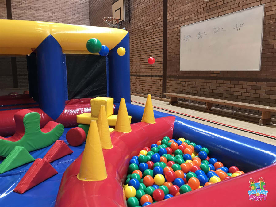 - Arena includes: Bouncy Castle, Slide, Ball Pool, Shapes